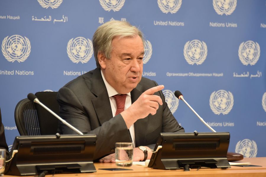 United Nations Secretary-General Antonio Guterres speaks at a press conference at the UN headquarters in New York, on Feb. 4, 2020, appealing for a strong feeling of support to China in the difficult circumstances. (Xinhua/Wang Jiangang)