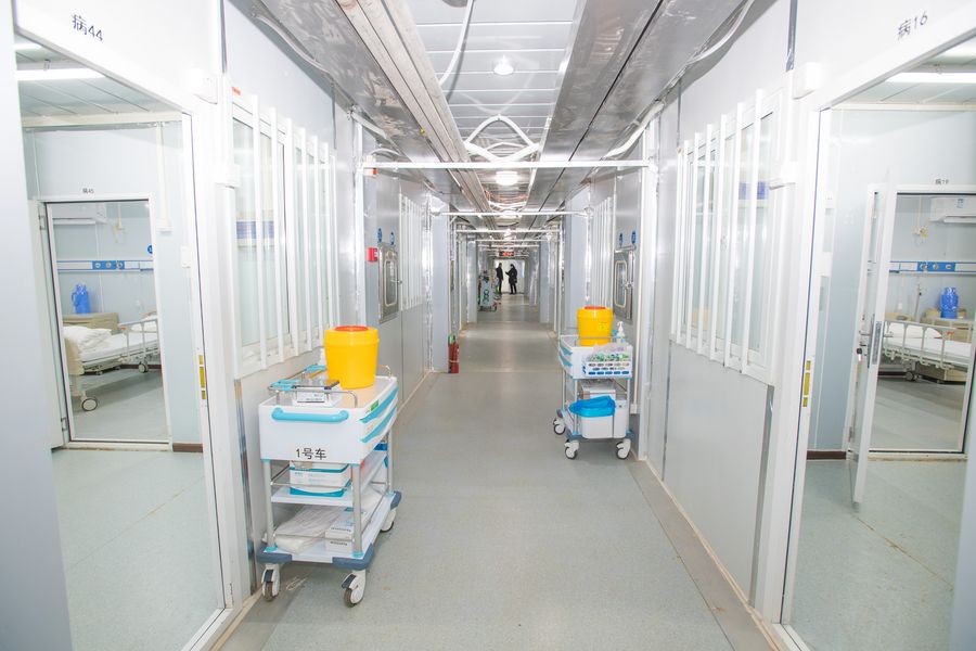 Photo taken on Feb. 8, 2020 shows the interior view of Leishenshan (Thunder God Mountain) Hospital in Jiangxia District of Wuhan, central China's Hubei Province. (Xinhua/Xiao Yijiu)