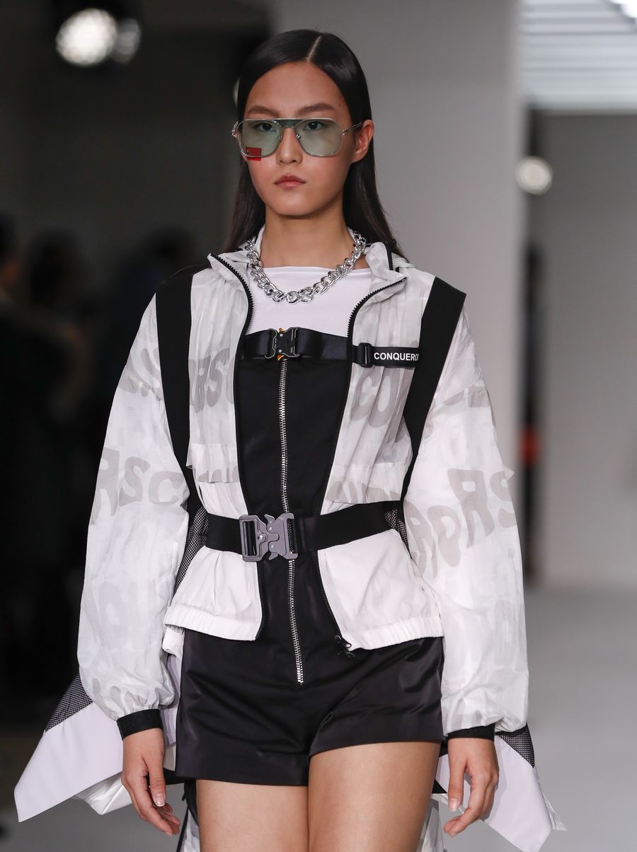 A model walks the runway during the BOSIDENG catwalk show at London Fashion Week in London, Britain. (Xinhua/Han Yan)■