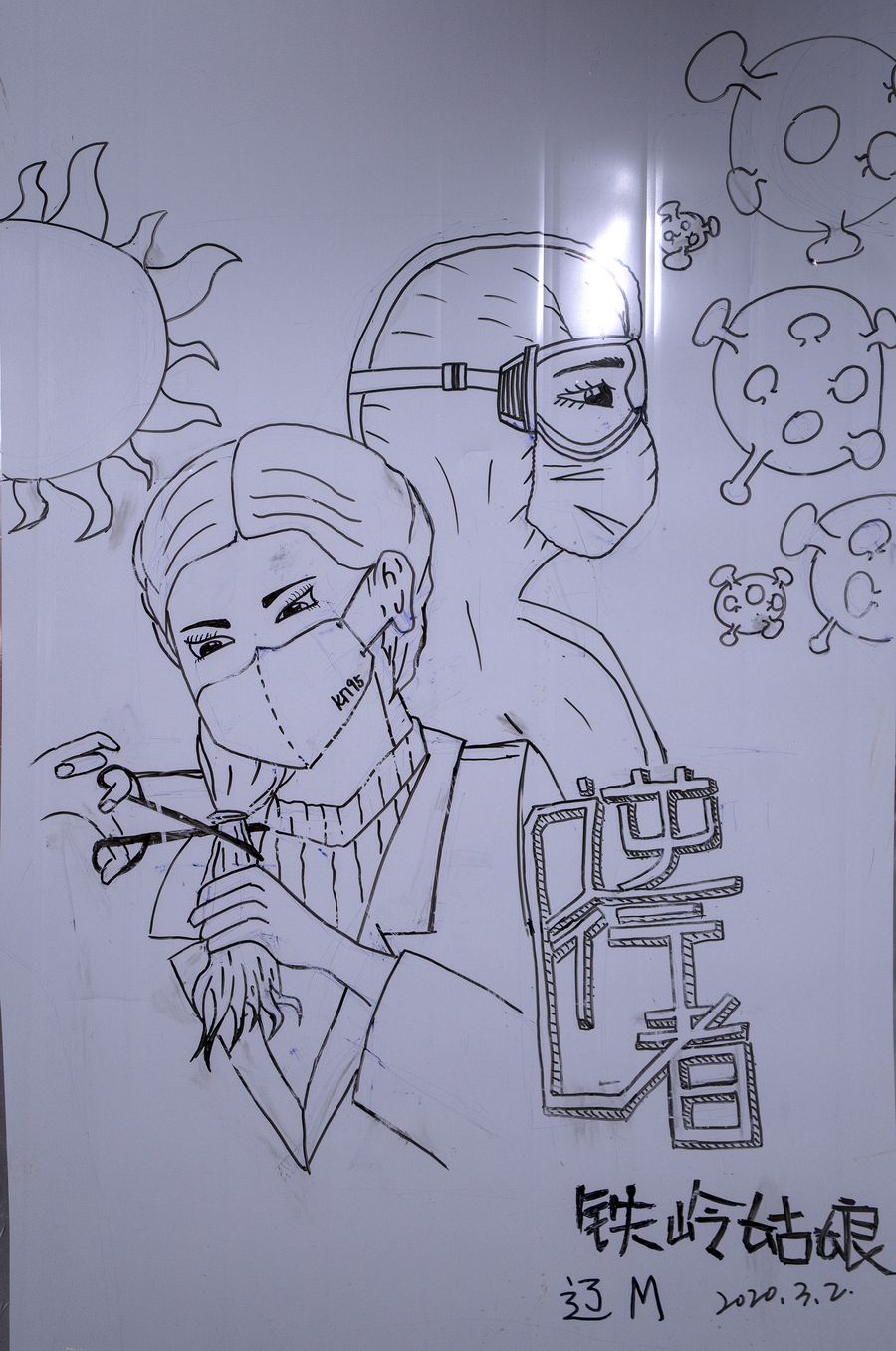 Liu Yu, a post-90s nurse in Leishenshan Hospital in Wuhan, the epicenter of the novel coronavirus disease (COVID-19) , is one of the artists of those more than 30 wall paintings. She is also one of the 500 medical workers sent to Wuhan from Dalian on Feb. 8 to aid local colleagues to treat patients and contain the virus spread there.