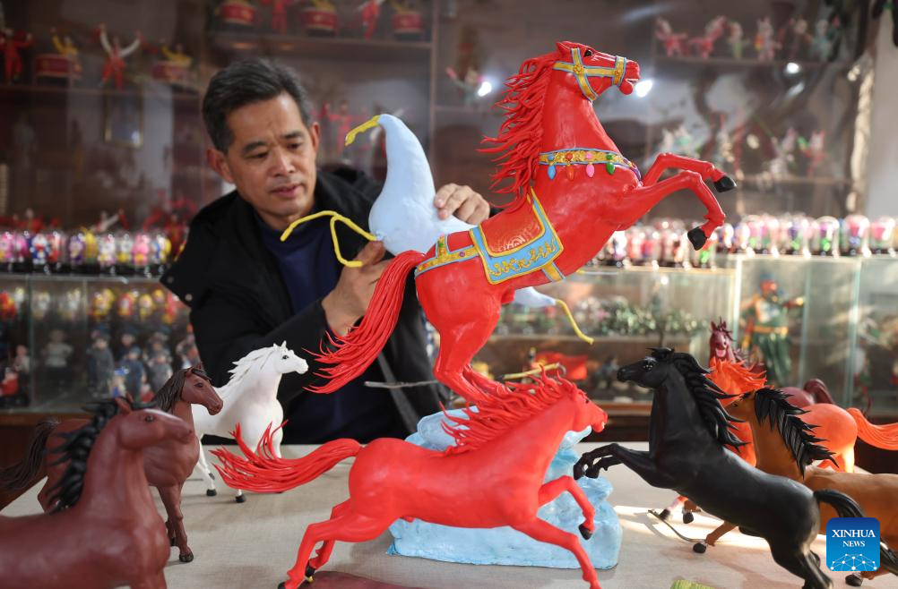 A craftsman makes horse-themed dough figurines in Zaozhuang, east China's Shandong Province, on Jan. 17, 2026. With the Year of the Horse approaching, a wide range of horse-themed cultural products, from museum souvenirs to traditional crafts, are gaining popularity in east China's Shandong Province. (Photo by Sun Zhongzhe/Xinhua)