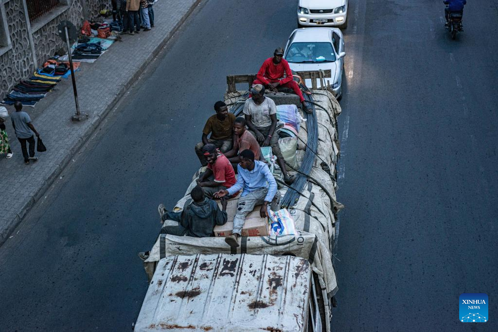Local workers are seen on a loaded truck in Goma, eastern Democratic Republic of the Congo (DRC), Jan. 27, 2026. (Str/Xinhua)