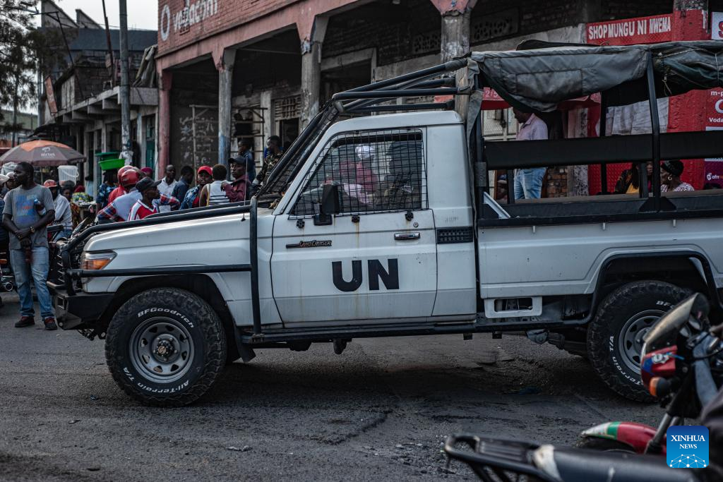 An armored vehicle of the United Nations is seen in Goma, eastern Democratic Republic of the Congo (DRC), Jan. 27, 2026. (Str/Xinhua)