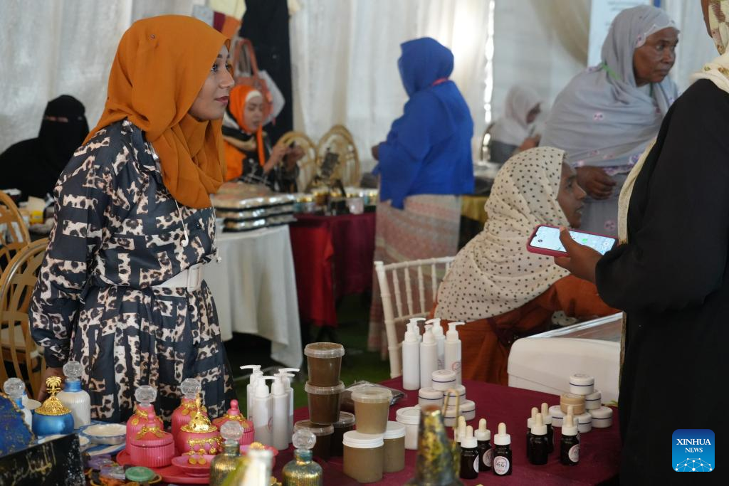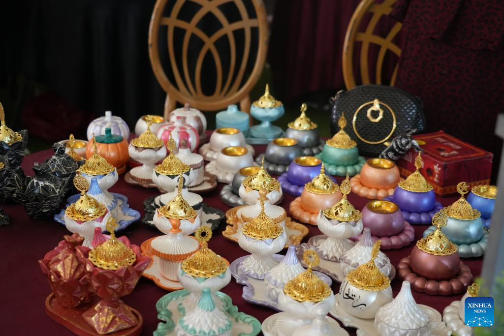 Photo taken on Jan. 27, 2026 shows traditional handcrafted accessories on display at the exhibition in Atbara, River Nile State, Sudan. Atbara, a relatively stable city in northern Sudan's River Nile State, is hosting the "Made in River Nile" exhibition, which highlights Sudanese industry's resolve to aid economic recovery and revive national production, even amid the country's ongoing internal conflicts. (Photo by Fayez Elzaki/Xinhua)