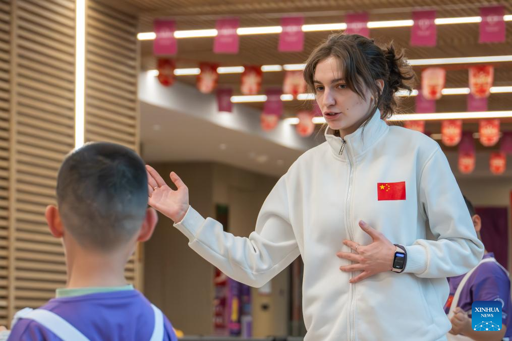 Zaparivannaia Mariia from Russia instructs young students at a fencing club in Wuhan, central China's Hubei Province, Jan. 10, 2026. Zaparivannaia is a coach at a fencing club in Wuhan. (Xinhua/Du Zixuan)