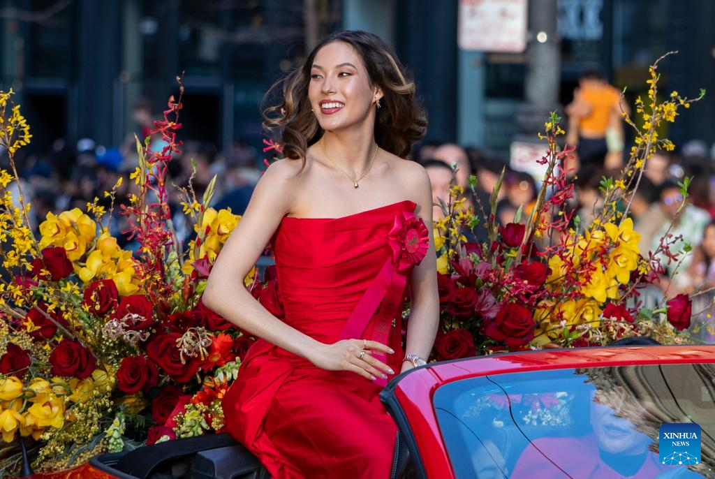 China's freeski Olympic champion Gu Ailing attends a float parade celebrating the Chinese Lunar New Year in San Francisco, the United States, March 7, 2026. (Photo by Ziyu Julian Zhu/Xinhua)