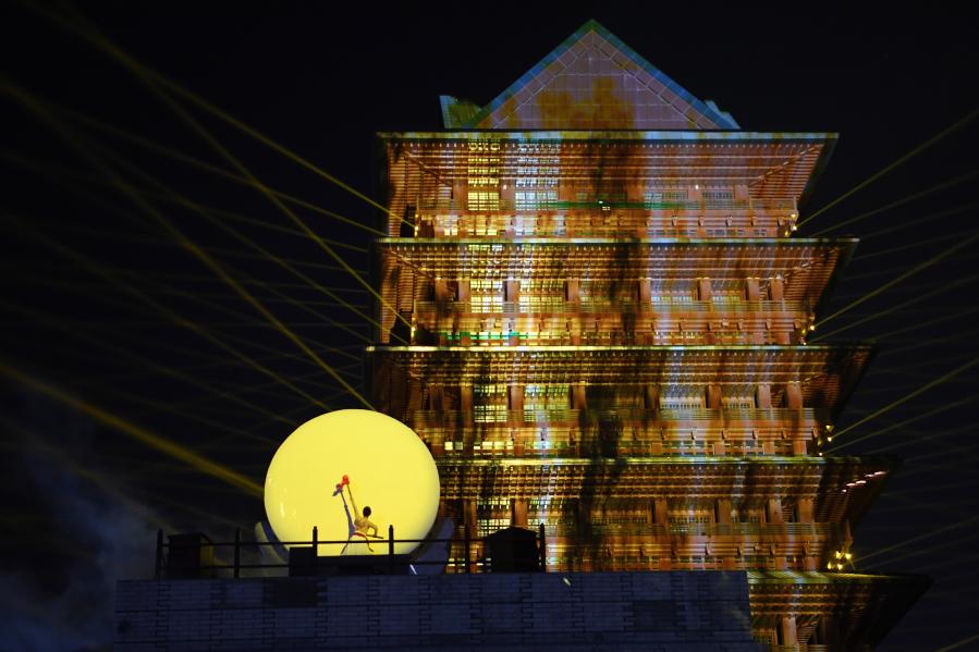 元旦期間,位于甘肅省蘭州市七里河區(qū)的蘭州黃河樓景區(qū)上演《大有蘭州》光影秀,表演分為“源之大河”“金之大城”“民之大韻”“蘭之大州”四個(gè)主題篇章,讓游客在黃河之濱感悟黃河文化。
