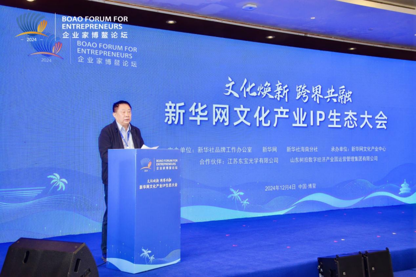 2024企业家博鳌论坛平行论坛新华网文化产业IP生态大会于12月4日在海南博鳌举行。本次大会由新华社品牌工作办公室、新华网、新华社海南分社联合主办,以“文化焕新 跨界共融”为主题,汇聚了地方政府文旅机构、文化行业协会、文化事业单位、智库机构和文化企业等各界代表,共同围绕文化产业发展的新路径与新模式,展开了深入有效的交流与探讨,携手共建发展赋能平台。