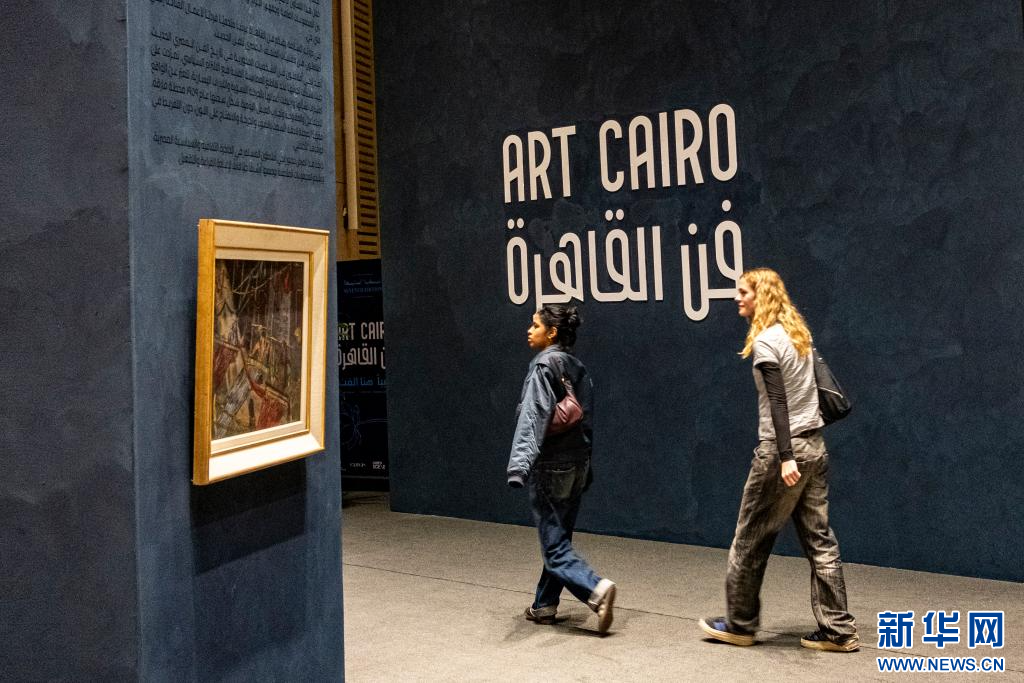 1月26日,在埃及吉萨的大埃及博物馆,观众参观开罗艺术展。