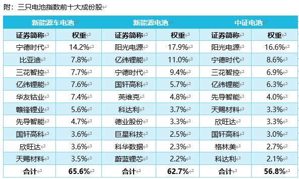 而中证电池指数则涵盖动力电池、储能电池、消费电池三类业务以及相关产业链上下游。