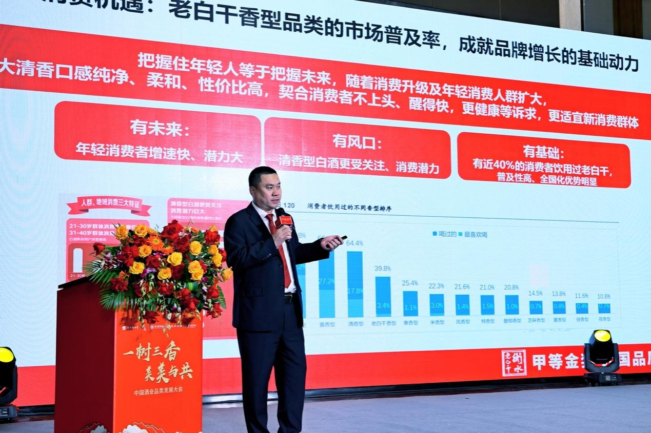 盛初咨询集团董事长王朝成以《中国白酒品类发展趋势》为主题带来他的观察和分享。在王董事长看来,中国白酒品类发展趋势呈现出浓香为主、多香并存的格局特点。近年来小香型发展加速,在大清香崛起风口下,王董事长为衡水老白干发展战略指出了几大关键,即:塑造有利的品类定位、强化传播历史优势基因以及推出竞争力全国化产品。