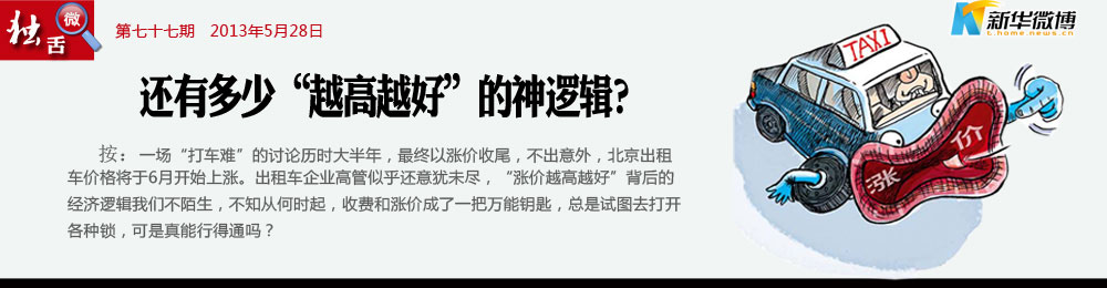 出租車(chē)價(jià)格越高越好! 出租車(chē)打不到,漲價(jià),大家都打不起車(chē)車(chē)就好打了;停車(chē)位沒(méi)有,漲價(jià),大家停 不起自然好停車(chē);醫(yī)院看病人多,漲價(jià)啊,一漲價(jià),大家都看不起病醫(yī)院人就少了……