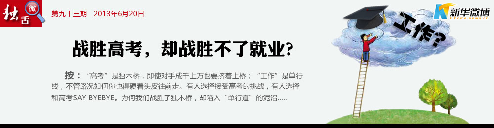“就業(yè)”的意義 高考不再獨尊,學歷不是唯一。多元的教育模式培養(yǎng)多元的人才,全新的評價體系造就各路英雄。高考神馬終歸是浮云,養(yǎng)家糊口才是終極目標。這即是“就業(yè)”的意義。