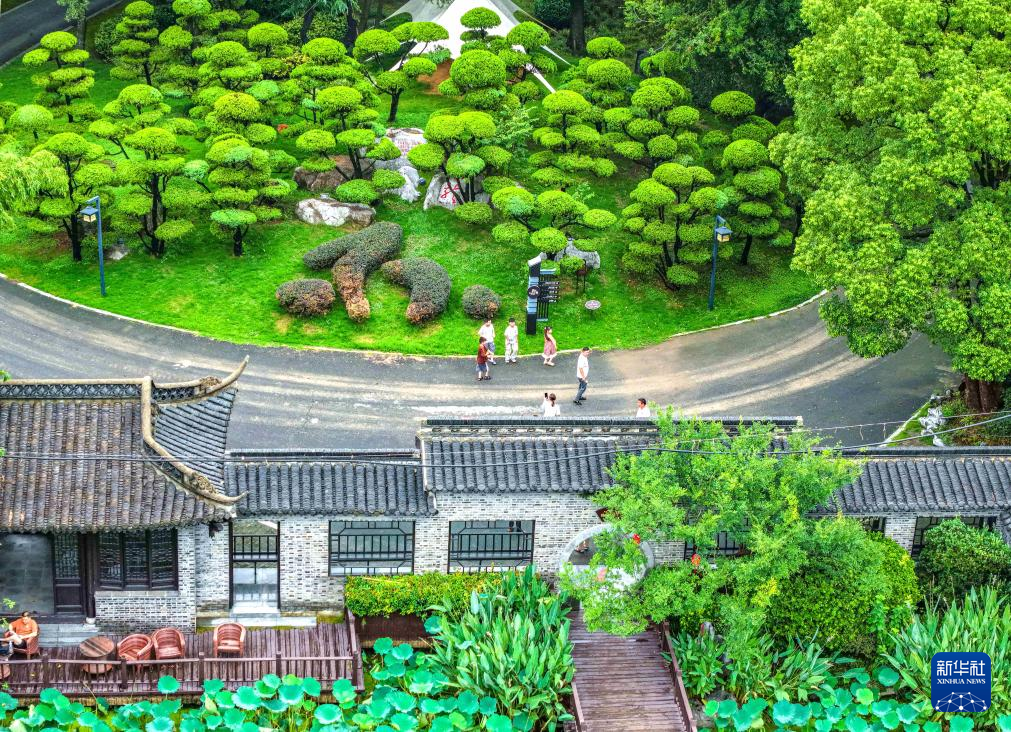 游客在江苏省扬州市江都区丁伙镇朴园游玩(无人机照片)。
