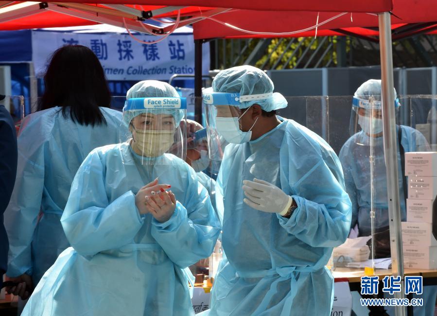 這是1月23日在元朗檢測站拍攝的為市民進行核酸檢測的醫(yī)務人員。新華社記者 盧炳輝 攝