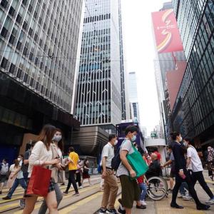 5月14日,市民在香港中環(huán)街頭過馬路。新華社記者 王申 攝
