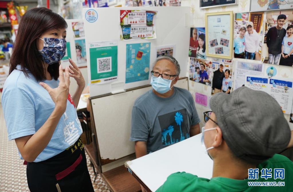 在香港鯉魚(yú)門“銀龍咖啡茶座”餐廳,女老板李凱瑚(左)在和店內(nèi)食客聊天(7月26日攝)。新華社記者 王申 攝