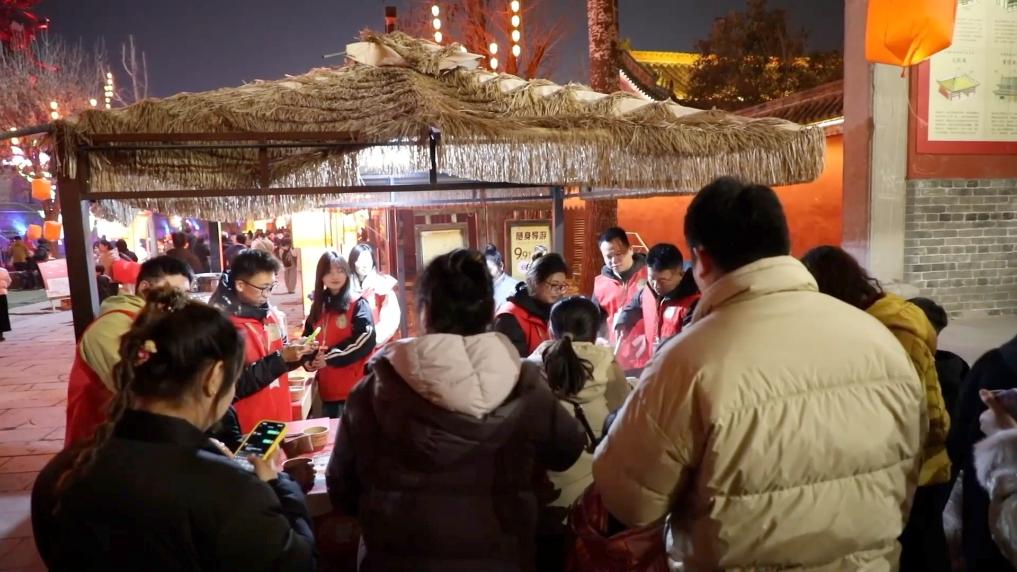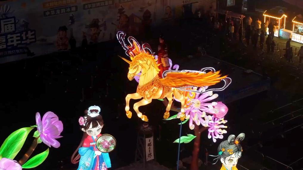马年主题灯组与十二花神、十二生肖灯组交相辉映,大型实景剧《水浒马战》也在激情上演,现场观众掌声不断。景区内,灯光秀与打铁花、火壶同步上演,现代灯光的科技炫酷与非遗技艺的古朴厚重完美交融。