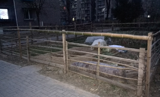 小區(qū)內(nèi)的公共綠地被嚴(yán)重侵占。許多公共綠地被業(yè)主開(kāi)辟為私家菜地,種植了各種蔬菜,用柵欄進(jìn)行了隔離,甚至有業(yè)主布設(shè)了大棚。據(jù)保安反映,城管曾要求業(yè)主恢復(fù)過(guò)去的綠地,但未見(jiàn)收到任何效果。