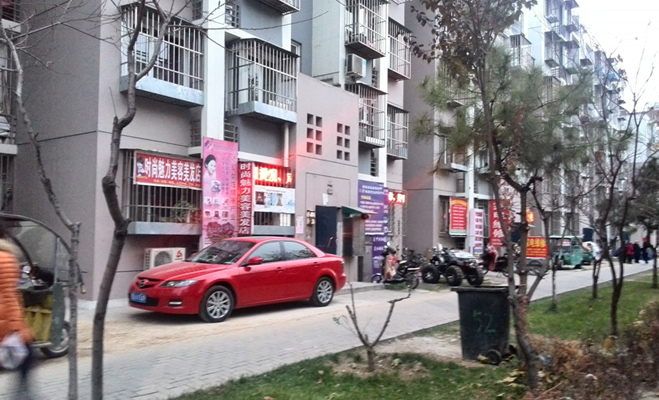 小區(qū)大門(mén)附近的樓棟放置了許多房屋租賃、美容、培訓(xùn)等方面的廣告牌,小區(qū)內(nèi)部也可見(jiàn)到居民開(kāi)設(shè)的超市,顯示小區(qū)對(duì)內(nèi)部的商業(yè)經(jīng)營(yíng)管制非常松懈。