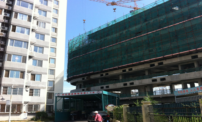 熱心的王大媽也跟記者反映:她所在的3號樓隔斷墻只有薄薄一層,毫無私密性科可言,“我們?nèi)枠桥瘹夤苁?分的,其他樓都是6分的這不是明擺著偷工減料么?!彼€反映自家的房屋采光受到了影響“現(xiàn)在新建的樓距離我家不到四十米,你看中午11點(diǎn)都沒有陽光。我們也找過開發(fā)商幾次至今沒有給出答復(fù)?!?/p>