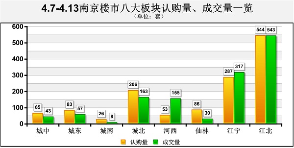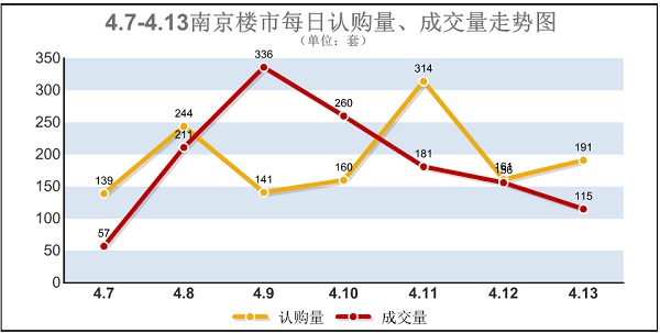 數(shù)據(jù)顯示,“銀四”第二周(4月7日-4月13日),南京樓市迎來11盤、近1900套新增商品房源的供應,庫存量也直線躥升至3.6萬套水平。銷售方面,截止4月13日晚間10點整,網(wǎng)上房地產(chǎn)數(shù)據(jù)顯示,上周南京新增商品房共計認購1350套,成交1316套,環(huán)比上一個統(tǒng)計周期分別上漲了1.7%、11.7%。日均認購193套、成交188套。業(yè)內(nèi)人士據(jù)此推斷,市場已進入年度強銷期,且由于青奧會停工的影響,銷售強度將不斷提高。…[詳細]