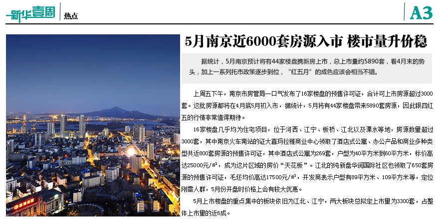 5月南京將有近6000套房源入市