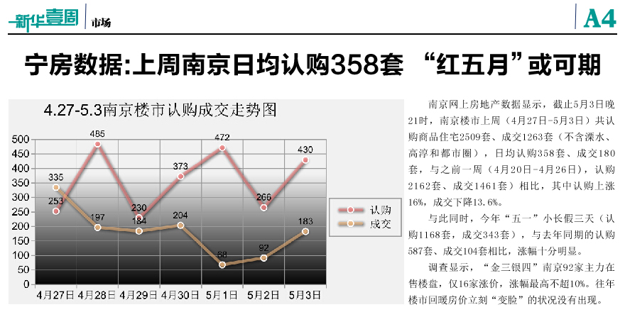 上周南京日均認(rèn)購(gòu)358套