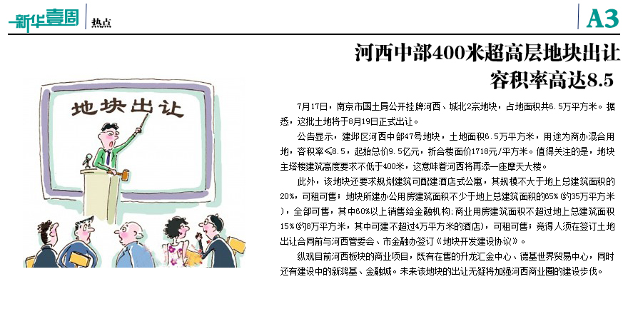 河西中部400米超高層地塊出讓
