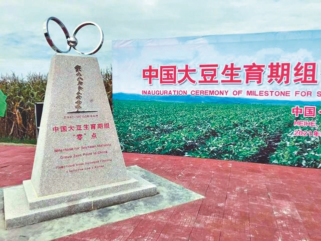 北緯50°15′,東經(jīng)127°27′,海拔168.5米——在黑河市矗立著一塊特殊的石碑,它就是中國(guó)大豆生育期組“零”點(diǎn)標(biāo)識(shí)碑。