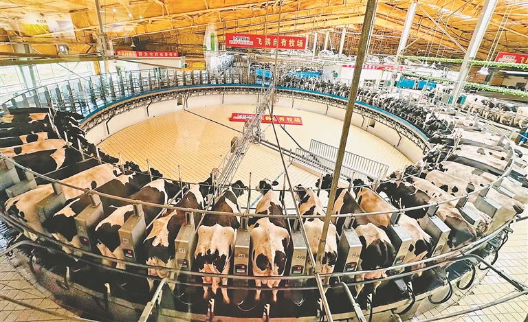 飛鶴自有牧場(chǎng)現(xiàn)代化擠奶大廳。