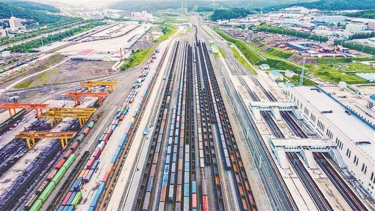 在“大進大出”方面,全面強化與俄方對接協(xié)作,促進跨境運輸擴量。鐵路口岸站場內到發(fā)線延長工程的完成,使接入列車數(shù)量大幅提高,過貨能力顯著增強。濱綏鐵路改造工程已完工,跨境列車時速由55公里提升至120公里。中俄跨境車輛聯(lián)檢快放、綠色通道等通關方式的創(chuàng)新實施,使異地車輛審批備案時間大幅壓縮。中歐班列“東通道”的提質改造,使跨境線路更加暢通。2024年,服務國內其他地區(qū)企業(yè)過貨額和服務“中歐班列”過境的數(shù)量均十分可觀,彰顯了片區(qū)作為物流樞紐的重要作用。