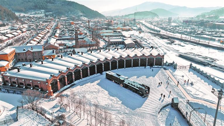 中東鐵路博物館機(jī)車庫展區(qū)。