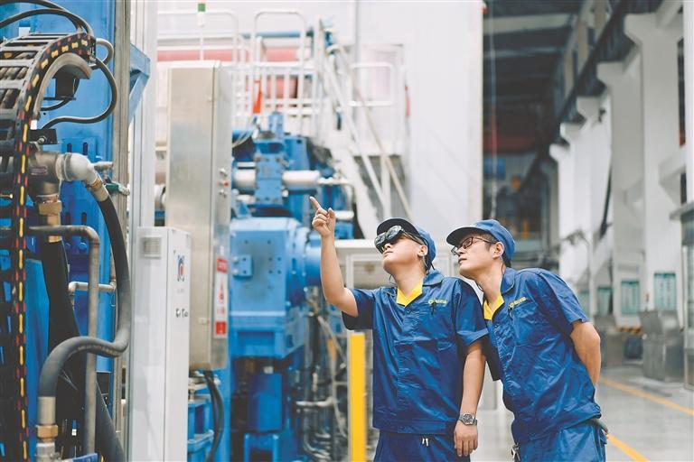 恒豐紙業(yè)工作人員正在使用AR眼鏡對(duì)設(shè)備進(jìn)行巡檢。