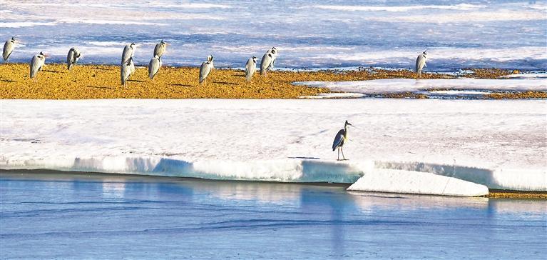 候鳥在黑龍江愛(ài)輝段江畔棲息。