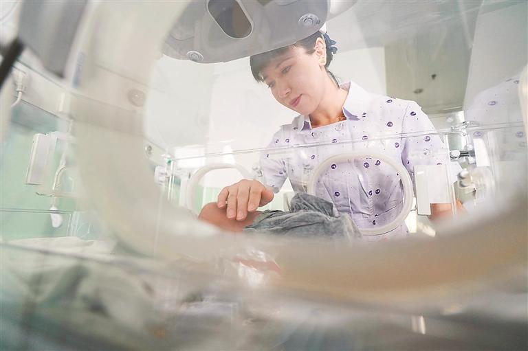 大興安嶺地區(qū)人民醫(yī)院護士護理新生兒。