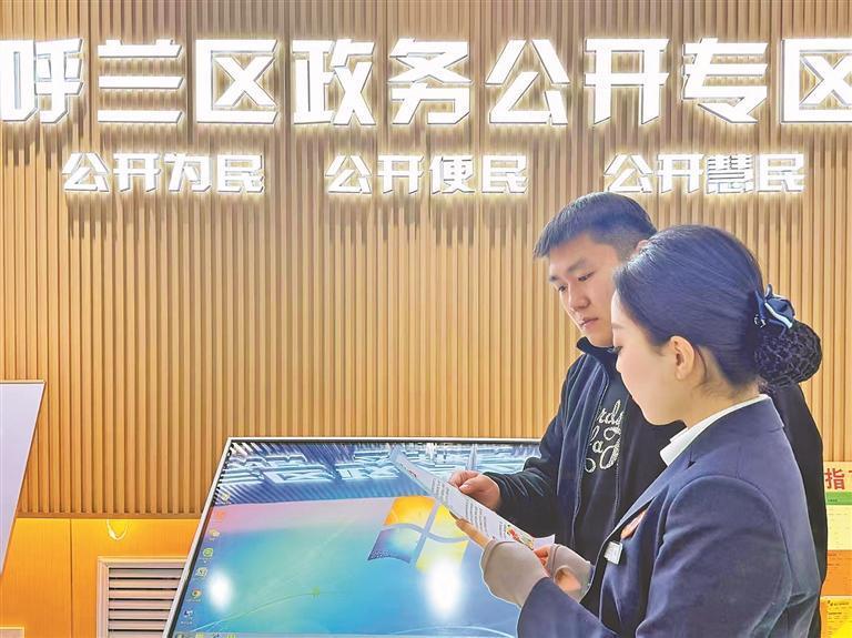 呼蘭區(qū)政務(wù)服務(wù)中心工作人員為企業(yè)講解“信用修復(fù)”政策。