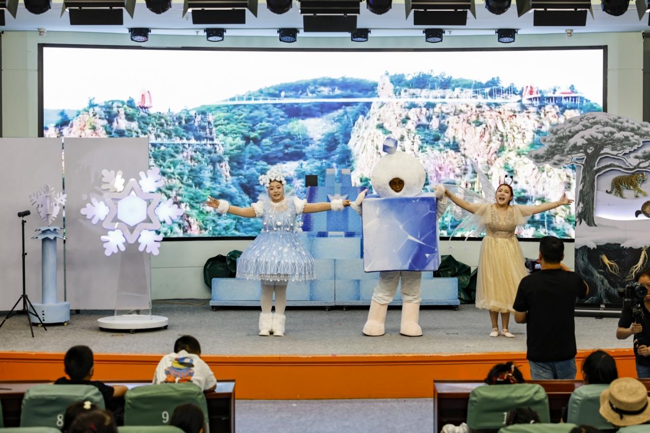 學(xué)術(shù)報(bào)告廳內(nèi),全新打造的科學(xué)實(shí)驗(yàn)秀《夏蝶語(yǔ)冰》登場(chǎng)。舞臺(tái)布景與人物設(shè)定匠心獨(dú)運(yùn),節(jié)目生動(dòng)演繹彩色影子、雪花形成、越夏儲(chǔ)冰三大科學(xué)原理,更巧妙串聯(lián)冰雪大世界的壯麗景致,讓觀眾沉浸式走進(jìn)冰雪背后的科學(xué)世界,直觀感受冰天雪地間人與自然和諧共生的生動(dòng)圖景。緊隨其后的科學(xué)秀《光之驕子》以激光研究領(lǐng)域先驅(qū)馬祖光院士為原型,通過多媒體光影與舞臺(tái)藝術(shù)的融合,再現(xiàn)科學(xué)家勇攀高峰的歷程。“激光實(shí)驗(yàn)的震撼現(xiàn)象讓孩子激動(dòng)得跳了起來!”家長(zhǎng)王女士說。