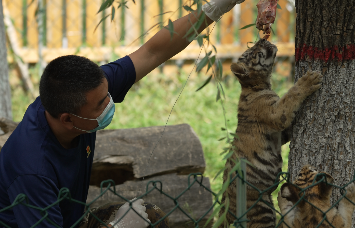 在東北虎飼養(yǎng)員李鑫的眼中,東北虎就像他的孩子,“工作18年,我迎接過(guò)上百只小東北虎的誕生,陪伴它們的時(shí)間比自家親人還多。”