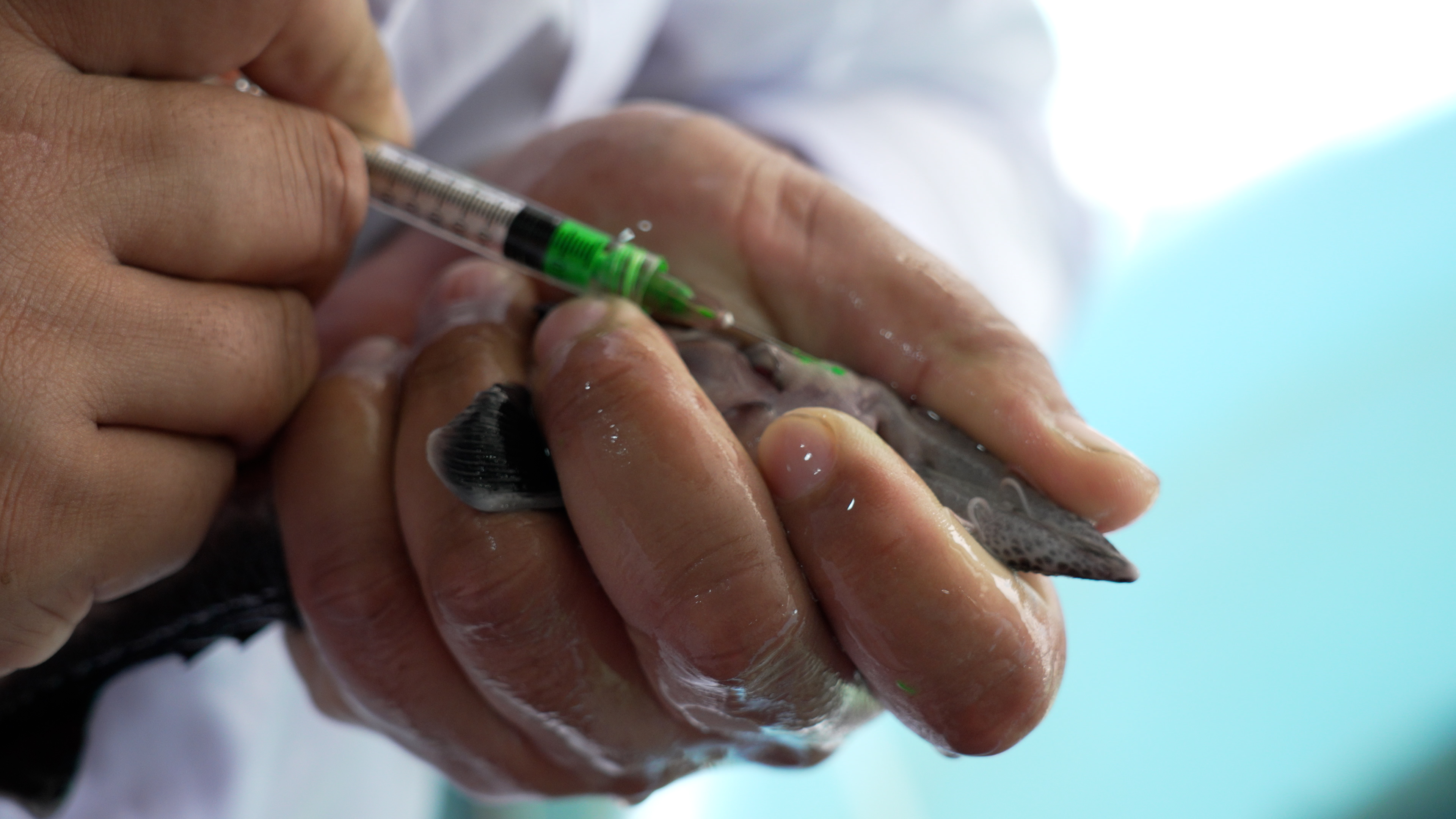 為鱘鰉魚注射熒光標記