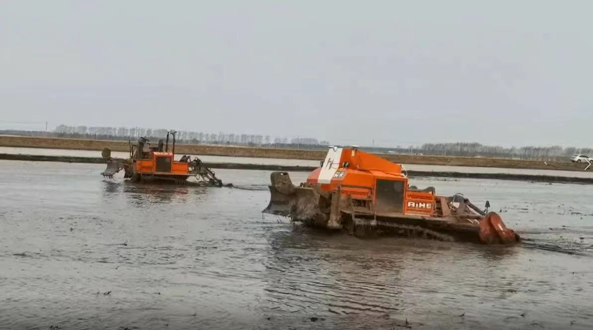 無人駕駛履帶式拖拉機(jī)進(jìn)行水整地作業(yè)