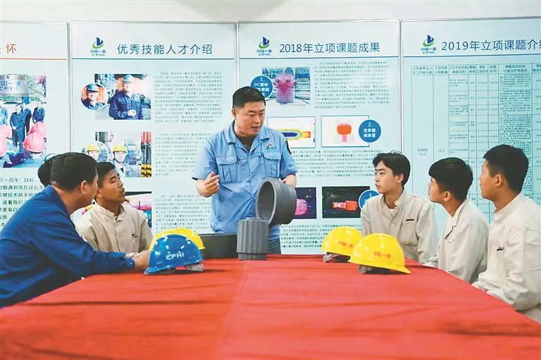 作為生產(chǎn)一線團隊,要把黨的二十大精神轉(zhuǎn)化為工作實踐,必須全力以赴、腳踏實地、攻克大鍛件制造的技術難關。圍繞國家創(chuàng)新驅(qū)動發(fā)展戰(zhàn)略,開展操作技能交流,掌握先進鍛件生產(chǎn)技術和先進操作方法,不斷提升中國一重大鍛件制造水平。圍繞鍛造產(chǎn)能提升、生產(chǎn)準點率、鍛件質(zhì)量提升三項重點工作,履行好崗位職責,明確當前及今后團隊工作重點。同時,還要大力開展技能培訓,充分發(fā)揮全國勞模、大工匠技能優(yōu)勢,做好技藝傳承,采取技能講堂、一線實際操作要領講解、師帶徒等多種形式,提升全體員工的理論知識水平和實際操作能力。