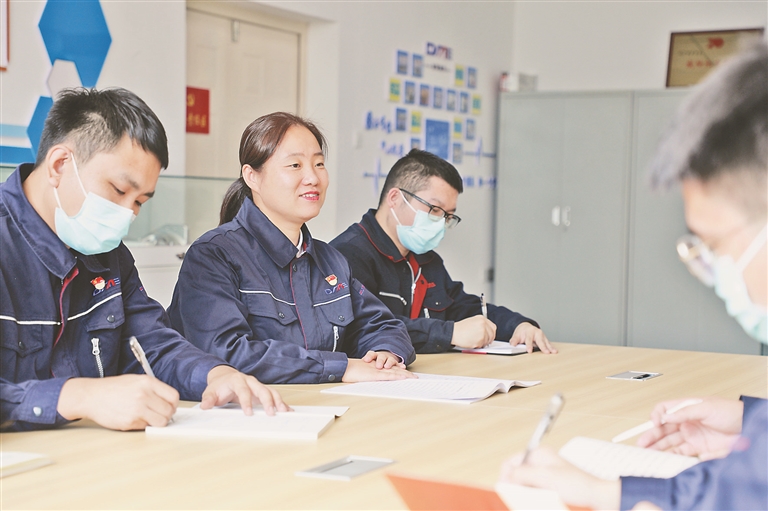苗秀與同事們分享大會(huì)對(duì)未來(lái)五年發(fā)展的部署安排。報(bào)告中指出“以國(guó)家戰(zhàn)略需求為導(dǎo)向,集聚力量進(jìn)行原創(chuàng)性引領(lǐng)性科技攻關(guān),堅(jiān)決打贏關(guān)鍵核心技術(shù)攻堅(jiān)戰(zhàn)。”分享交流中,同事們對(duì)自己身處研發(fā)生產(chǎn)一線,肩負(fù)自主創(chuàng)新的使命認(rèn)識(shí)更加清醒。大家紛紛表示,將深耕本職崗位、不斷學(xué)習(xí),更加努力做好研發(fā)創(chuàng)新工作,提高企業(yè)的自主創(chuàng)新能力,為制造業(yè)高質(zhì)量發(fā)展增添新動(dòng)力,壯大實(shí)體經(jīng)濟(jì),把報(bào)告中的藍(lán)圖加快轉(zhuǎn)變?yōu)楝F(xiàn)實(shí)。