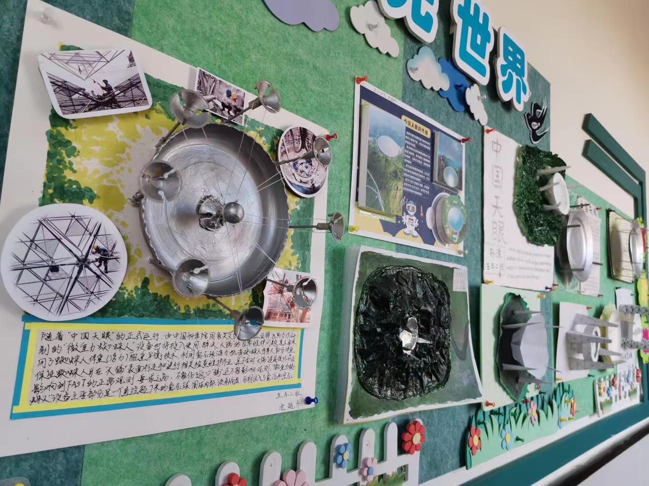 校園內(nèi),一條名為“智造未來(lái)”的中國(guó)前沿科技成果文化長(zhǎng)廊縱貫東西,展示的是學(xué)生們用不同材料制作出中國(guó)火箭模型、天眼射電望遠(yuǎn)鏡模型、組裝航母船模等作品,展現(xiàn)了學(xué)生對(duì)科學(xué)探索的動(dòng)手實(shí)踐能力和對(duì)科學(xué)家的無(wú)限崇敬與熱愛之情,激發(fā)了學(xué)生學(xué)科學(xué)、用科學(xué)的濃厚興趣。