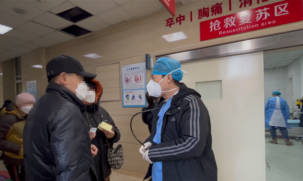 隨后,記者來到該院急診科,這里承擔著醫(yī)院最前線的診療任務。室外,一輛輛急救車接踵而來,醫(yī)護人員聞聲而動,馬不停蹄接診送來的患者;室內,醫(yī)護人員在人群中往來穿梭,緊急搶救患者,緊盯監(jiān)護儀上的數(shù)字,為患者做心電圖、測血氧……見到急診科副主任張瑞時,他正在和患者家屬交代入院注意事項。交代完,張瑞告訴記者,平時急診科每天大概接診100多名患者,現(xiàn)在一天要接診300多名患者,醫(yī)護人員每天連續(xù)工作十幾個小時已經是常態(tài),大家都在主動加班、主動替班、隨叫隨到?!皝淼郊痹\科的患者都非常焦急,有時情緒也比較激動,但看到我們醫(yī)護人員都在竭盡全力,患者也會理解我們,對我們說一句‘辛苦了’。春節(jié)快到了,希望這些患者能早日恢復健康,度過一個平安快樂的新春佳節(jié)?!睆埲鹫f。