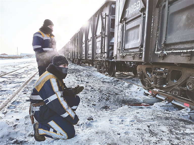 作為調車員,孫楠和同事們的工作就是負責對運煤列車進行編組、拆分、檢查,以保證將大興安嶺產出的煤順暢通過鐵路運往全國各地。他們也被稱為火車的“穿針引線”人。
