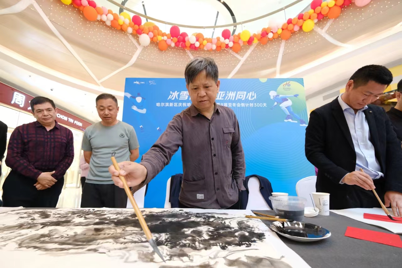 “雪韻冰城、激情亞冬”“擁亞冬之夢(mèng)、結(jié)冰雪之緣”……哈爾濱新區(qū)書畫家創(chuàng)作沙龍的老師們現(xiàn)場(chǎng)創(chuàng)作,一幅幅書畫作品激情澎湃,鏗鏘有力。哈爾濱書法家協(xié)會(huì)負(fù)責(zé)人劉玉龍邊寫邊說:“2025年亞冬會(huì)在哈爾濱舉辦,是每一位市民的光榮,作為書法愛好者,要用手中的畫筆為亞冬會(huì)增光添彩”。