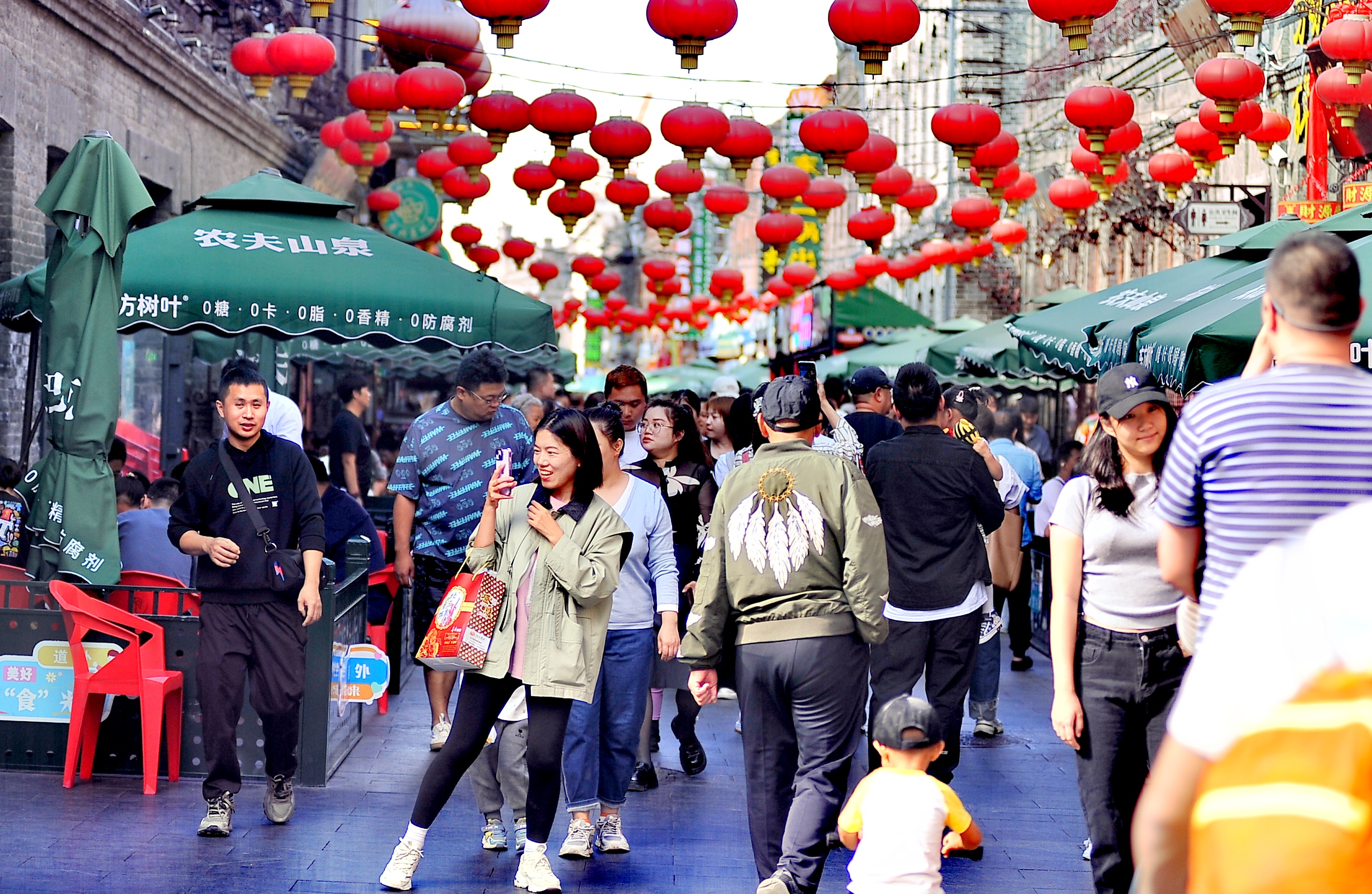 17日,哈爾濱市道外區(qū)中華巴洛克歷史文化街區(qū)內(nèi),許多游客在參觀游玩,品嘗美食,拍攝美景。有的游客乘坐觀光小火車在街區(qū)里穿行,感受老建筑的魅力。有的游客在路邊品嘗老字號飯店的美味佳肴,他們吃邊喝,大快朵頤。孩子們則對糖畫、面人等手工藝品的制作過程產(chǎn)生濃厚興趣,守在攤位前久久不愿離去。據(jù)了解,中秋節(jié)假期里,每天都有數(shù)萬人前來游玩。觀看手工藝人現(xiàn)場制作