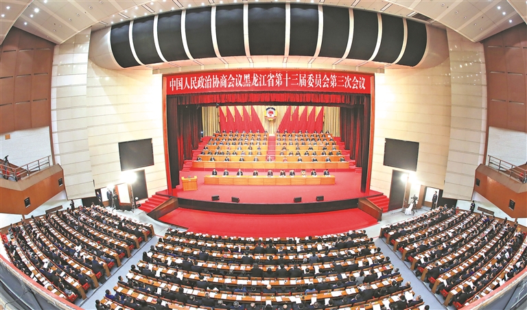 12日,政協(xié)黑龍江省第十三屆委員會(huì)第三次會(huì)議開幕。這是開幕會(huì)現(xiàn)場(chǎng)。 本報(bào)記者 張澍攝