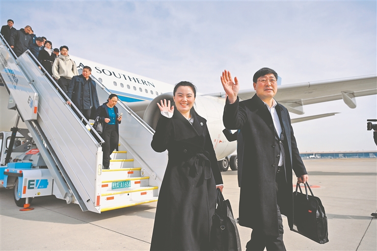 3日下午,出席全國政協(xié)十四屆三次會(huì)議的住黑龍江省全國政協(xié)委員抵京。本報(bào)記者 荊天旭攝